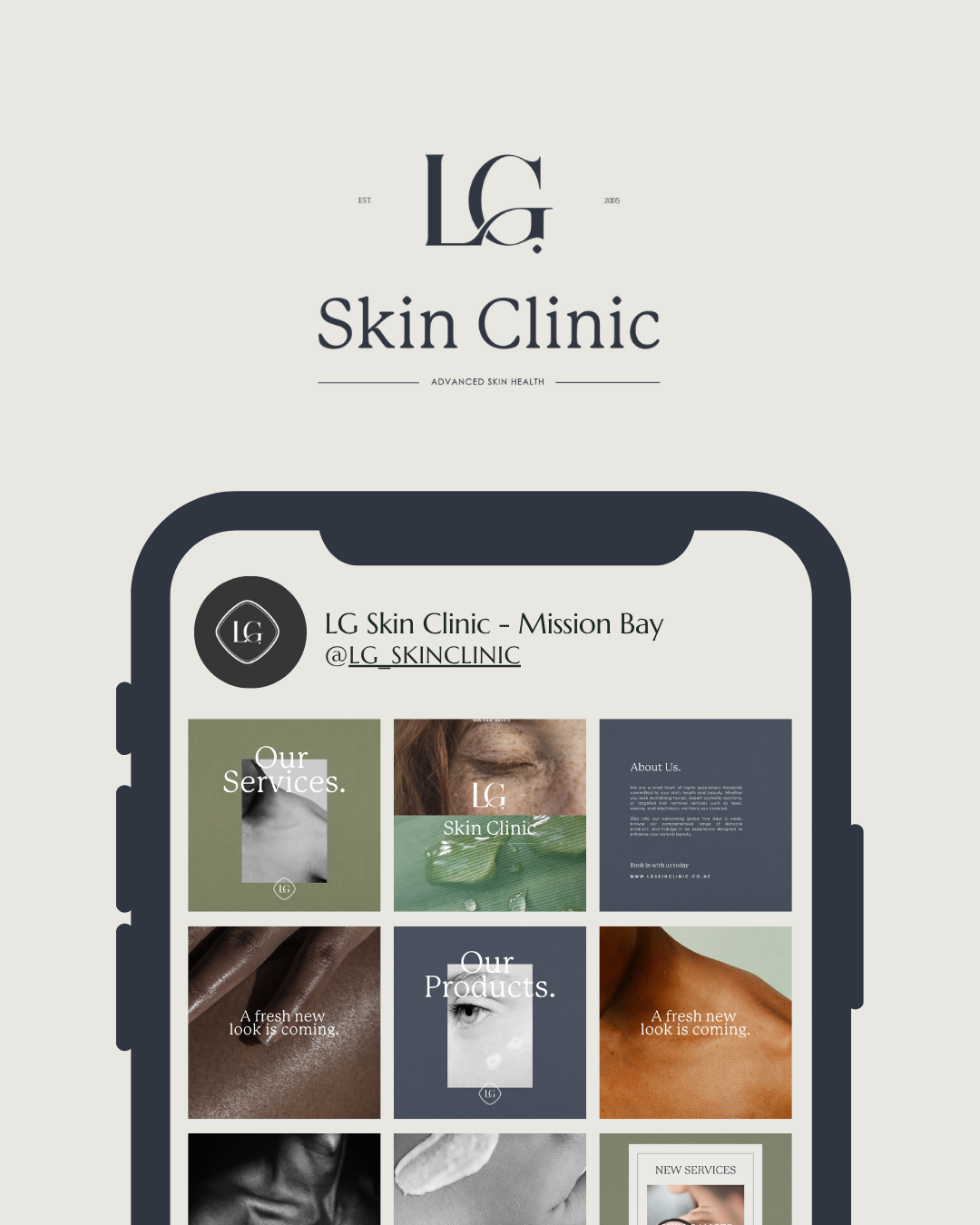 Kelly and the team have built something truly special with LG Skin Clinic — a space that feels calm, considered, and deeply professional. My role was to translate that feeling into a visual identity that matched the experience their clients receive every day.